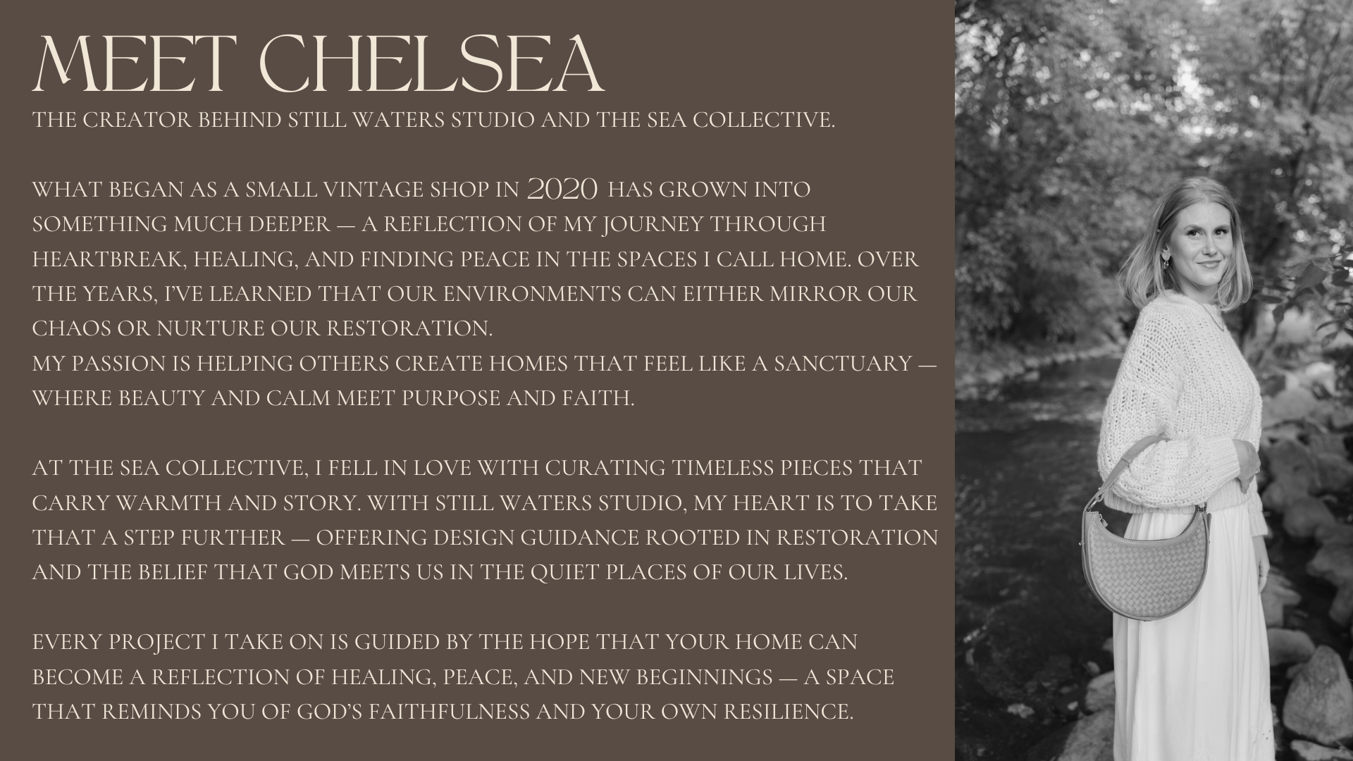 For a full-service experience rooted in restoration and renewal. Together, we’ll work through multiple calls and design sessions to curate a personalized E-Design plan tailored to your space and story. You will also have the option for me to source and ship décor directly to you, creating a complete transformation from start to finish — a home that truly feels like healing.