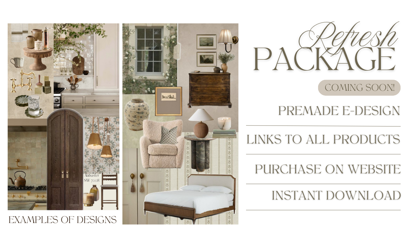 For those looking to gently refresh their space, this pre-made E-Design offers an instant way to bring peace and beauty into your home. Each design is thoughtfully styled and includes direct links to all the products used — making it easy to recreate the look on your own.