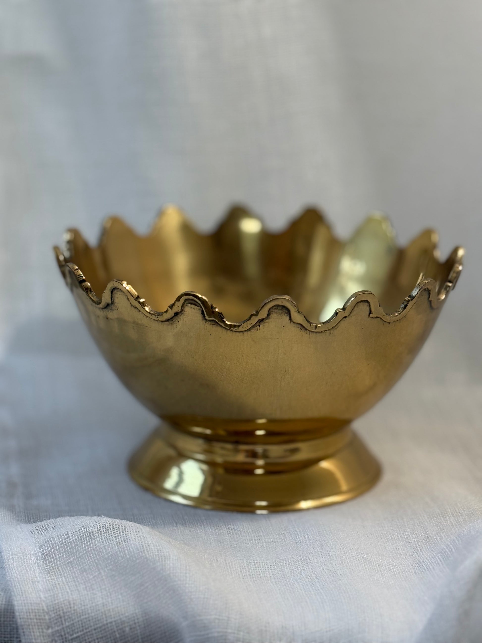 This Antique Brass Crown Vessel features a distinctive crown-like border and is preserved in beautiful, like-new condition. Its elegant design makes it a striking addition to any collection or display. Would make a stunning candle!