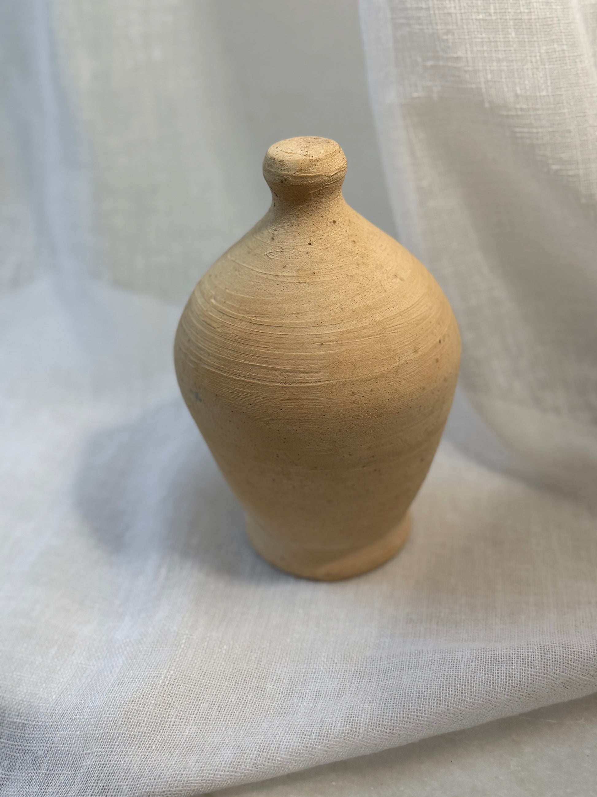 This handmade ceramic vessel features a unique shape with a single slit on top, adding an intriguing touch to your space. Perfect for layering with other pottery or decor, it offers a stylish, artistic accent without a defined function.