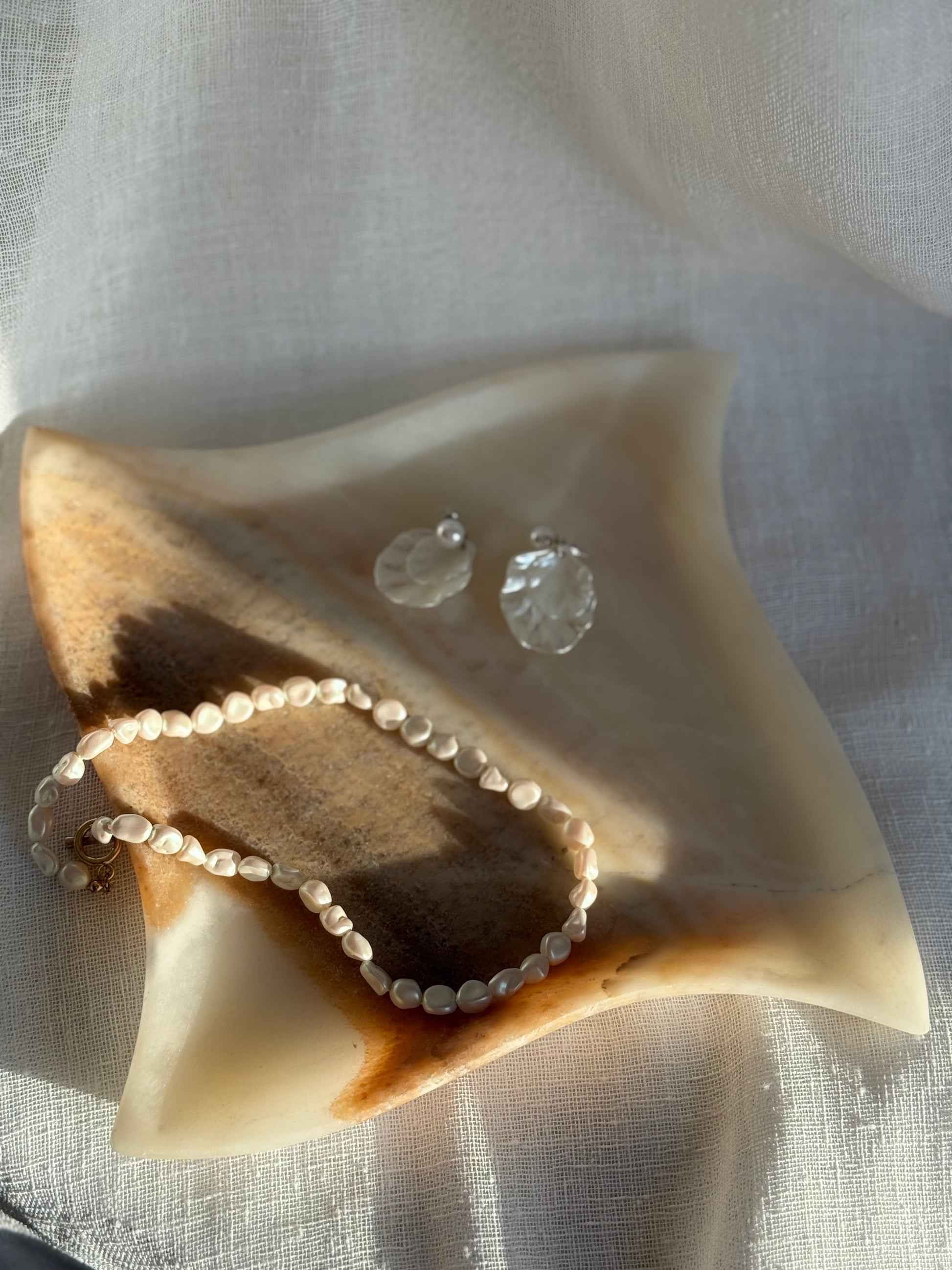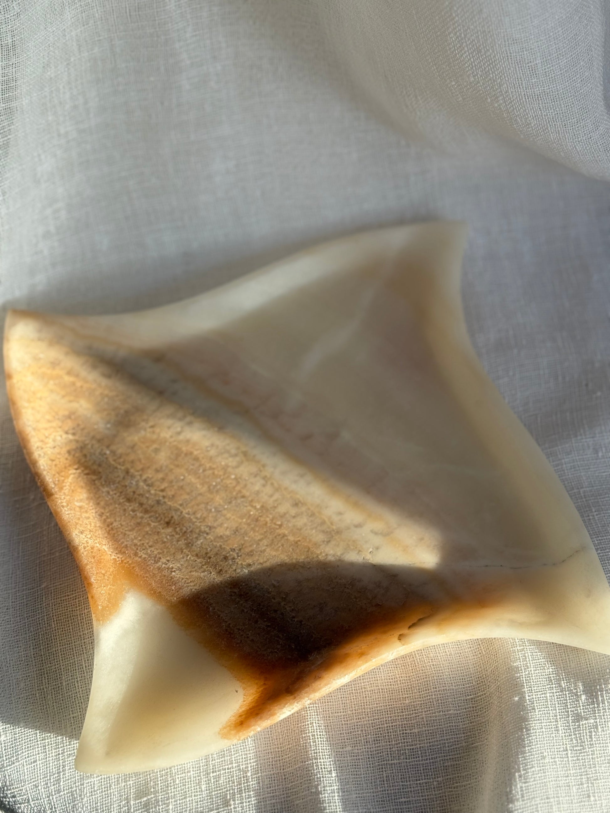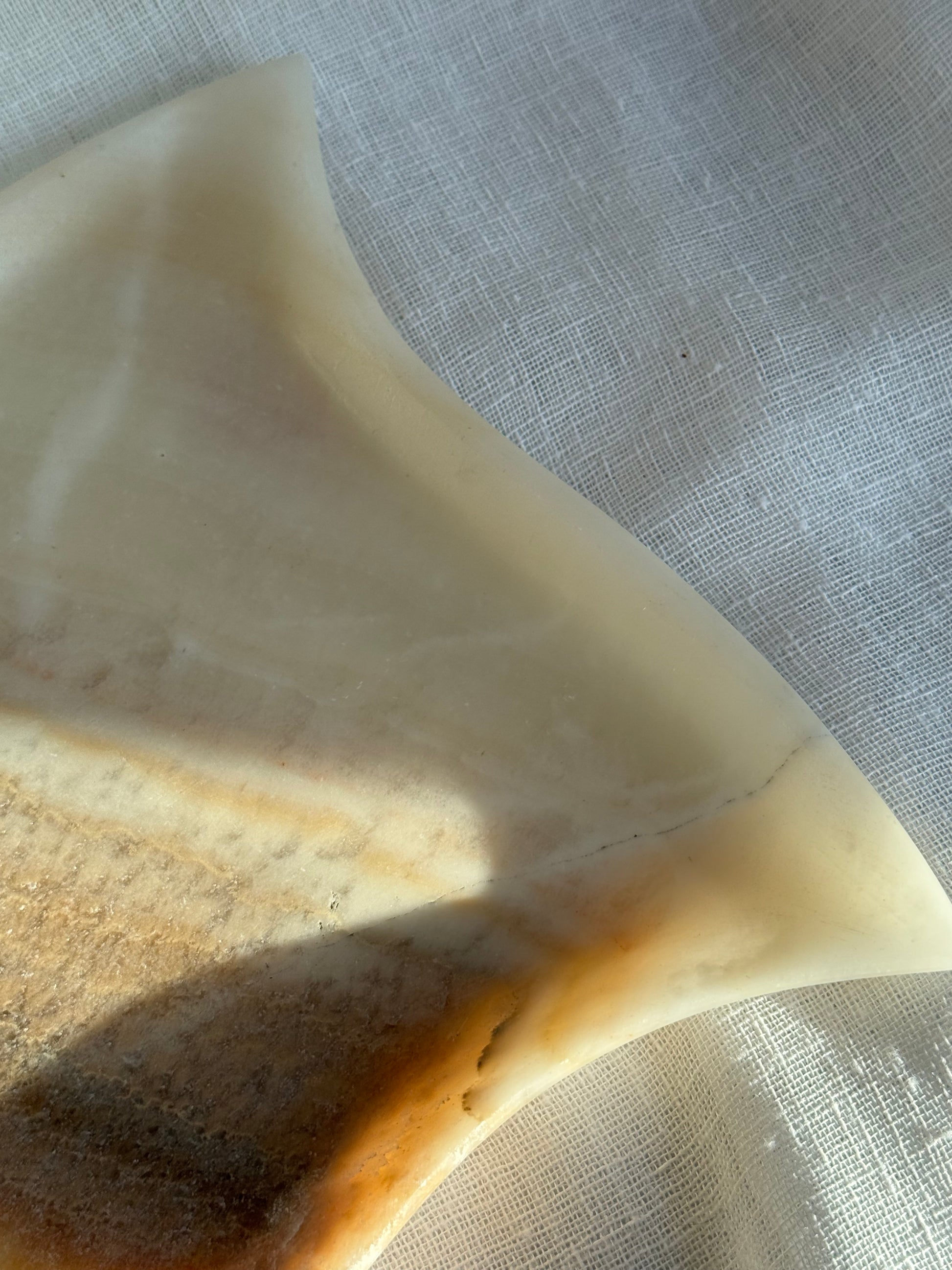 This Onyx Stone Tray boasts a gorgeous, unique shape and stunning neutral colors. Perfect as a jewelry display, candle holder, or catch-all dish, it adds elegance and versatility to any space. In great condition. (Jewelry not for sale.)