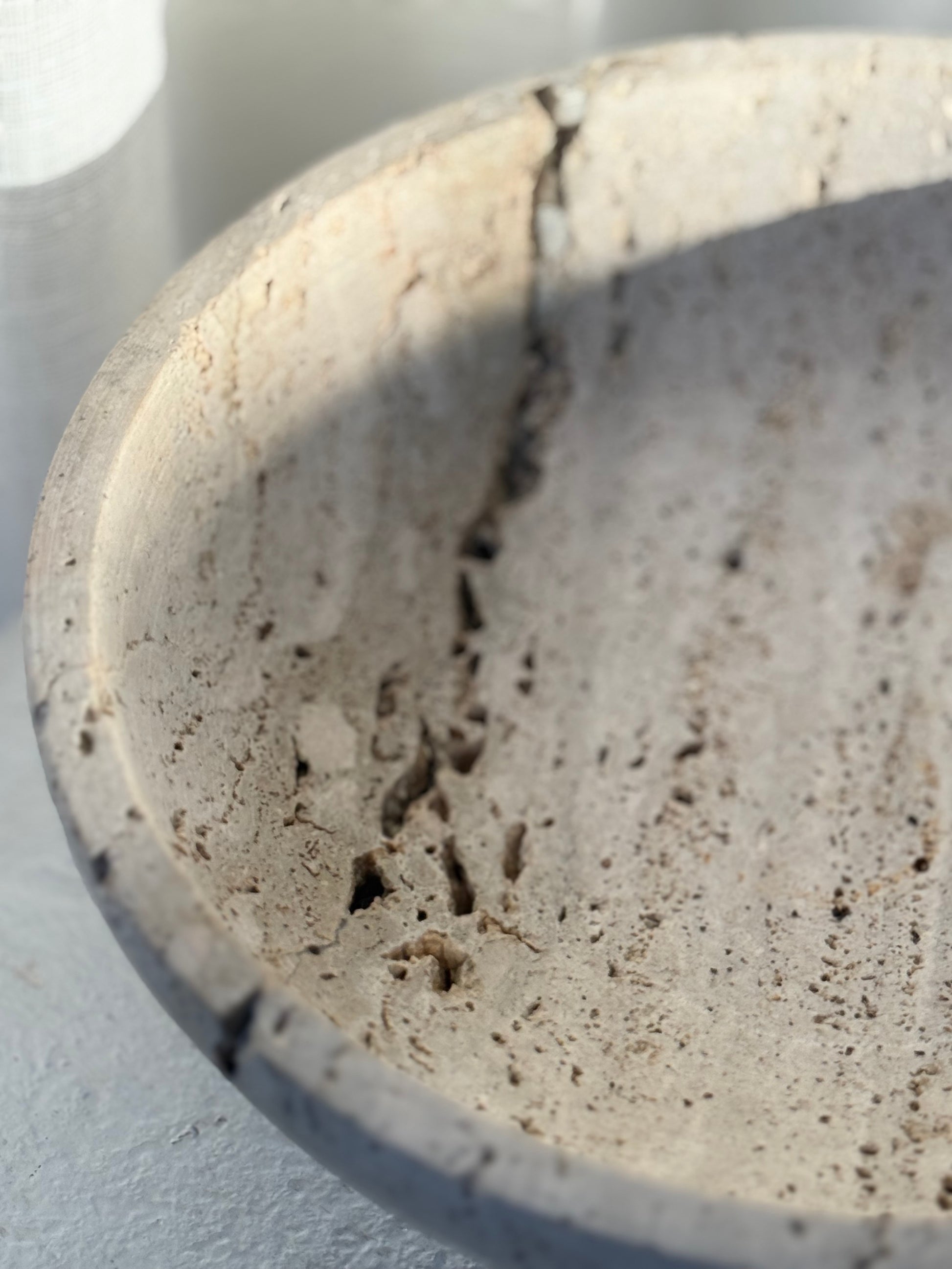 This travertine stone bowl showcases the beauty of natural, raw stone with a matte finish. Its earthy texture adds organic charm, perfect for bringing a subtle, rustic touch to any space.